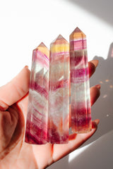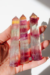 Keep your Candy Rainbow Fluorite tower in your sacred space, on your desk, or near your bedside to support mental clarity and intuitive growth.